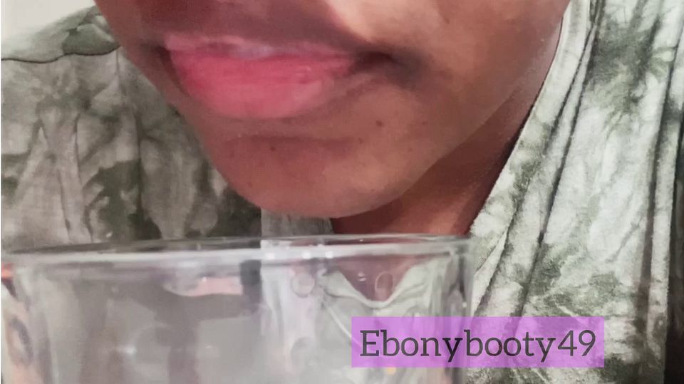 Ebony drooling into a glad cup