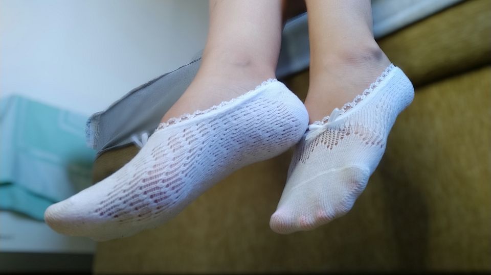 Blowjob - footjob with lacy white short socks